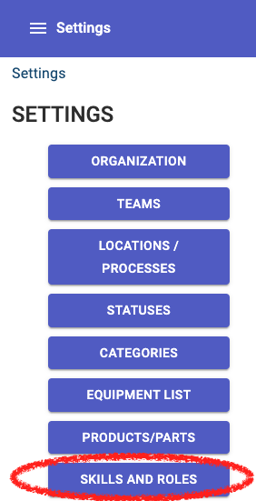 - Go to Settings > Skills & Roles (if you don't see this option, you'll need to ask an Admin for permission)