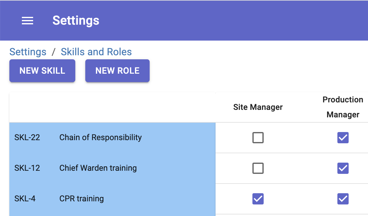 Use the checkboxes to assign Skills to Roles