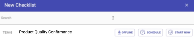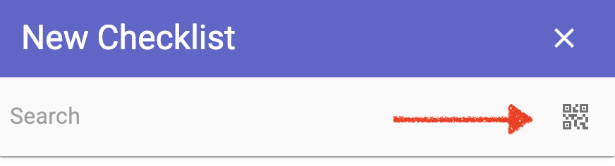 Offline supports starting checklists from QR codes. To engage the camera, click NEW CHECKLISTS button, and then the QR code icon. The camera will open and you can scan the QR code.
