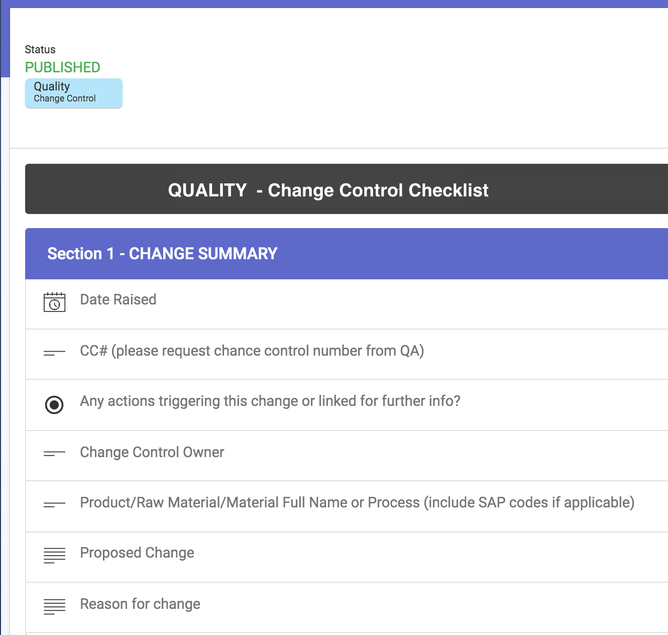 Quality Assurance scripted Checklist, a structured approach to an authorised variation to plan. Providing tools to the Frontline, to raise and action a proposed product change. Ensuring compliance of your organisation's Quality standards.