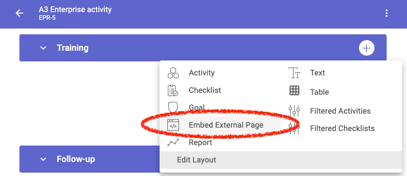 Identify the section where you want to embed the webpage and click on the "+" menu