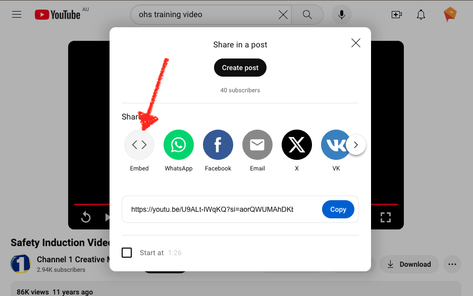 Below is an example from YouTube. Click on the Share button for a video to see this pop-up: