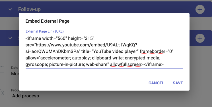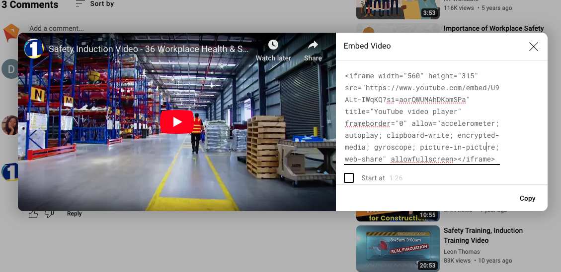 - Each webpage has their own way of getting to the iframe url that needs to be copied. Usually it is an option behind a Share button.