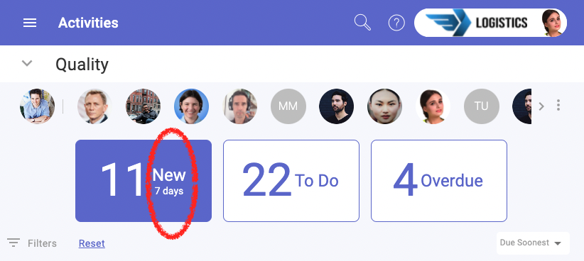 The New filter shows new activities raised or shared in the last 24 hours by default.