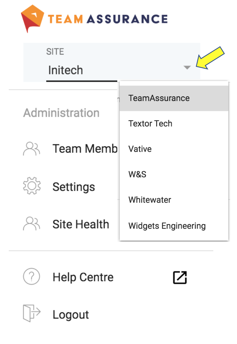 Many organisations have multiple instances of TeamAssurance. This is to separate the data between sites or divisions, and keep teams focussed where they need to focus. However there will be users that need to access two or more sites, and the easiest way is to use the Site Switcher. Then with one login you can access multiple sites (or locations, or divisions).