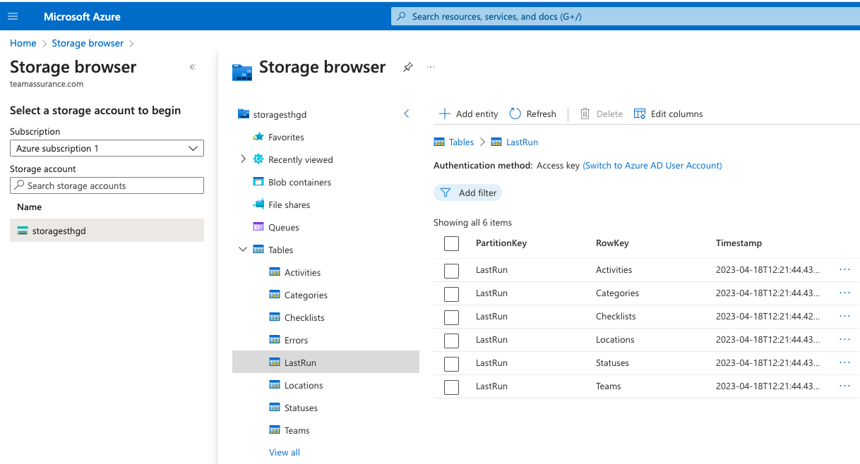 - Select the relevant storage account