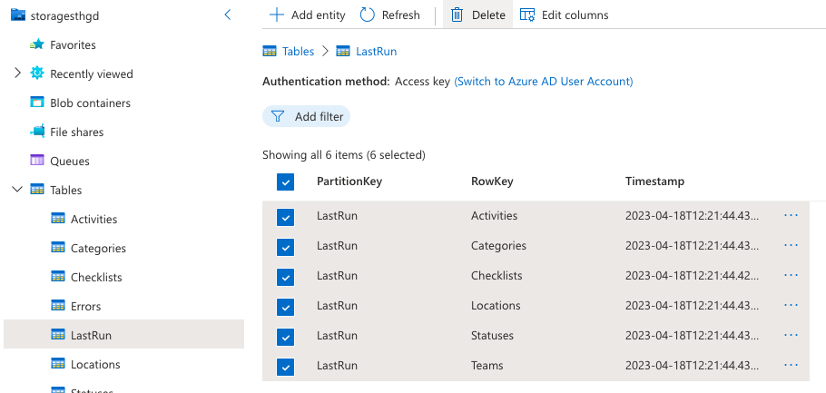 Select Tables > LastRun