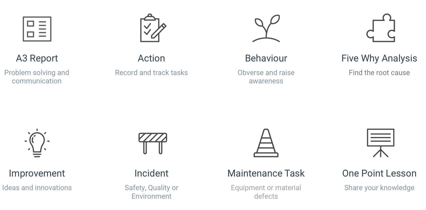 Also known as kaizen, anyone identifying an opportunity to improve can raise an idea. Click Improvements to see more