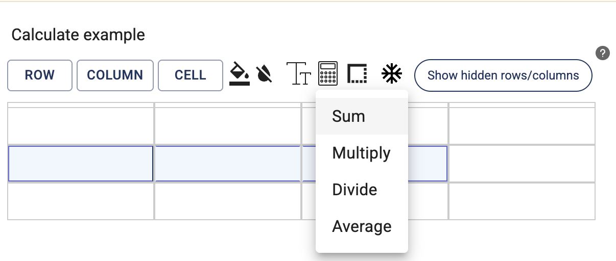 Calculate options include; sum, multiply, divide and average.
