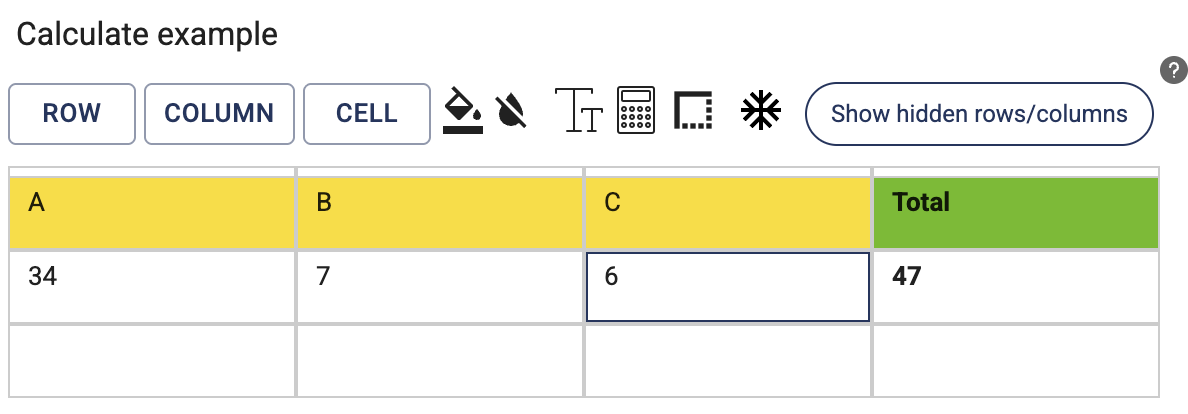 - Confirmation: The system highlights the cells that contributes to the calculation and also shows a Total in the last column